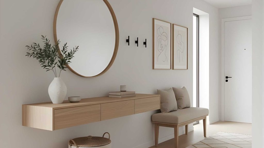 Measure your space meticulously. Before buying that gorgeous bench or wide console, map out the traffic flow. You need a clear path from the door to the rest of the house. In a narrow hallway, a shallow floating shelf design might work better than a bulky table. Ensure that when the door is open, it doesn’t hit any furniture or knock over decor. A functional entrance is a beautiful entrance.